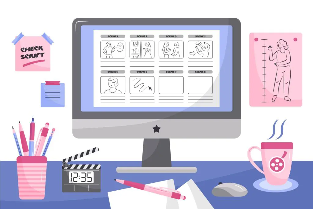 1. Script schrijven: een goede animatie begint bij een ijzersterk script dat de kern van het verhaal weerspiegelt. Bij een cartoon animatie denk je op voorhand extra goed na over wie de karakters in de animatie zijn en hoe die vorm moeten krijgen.